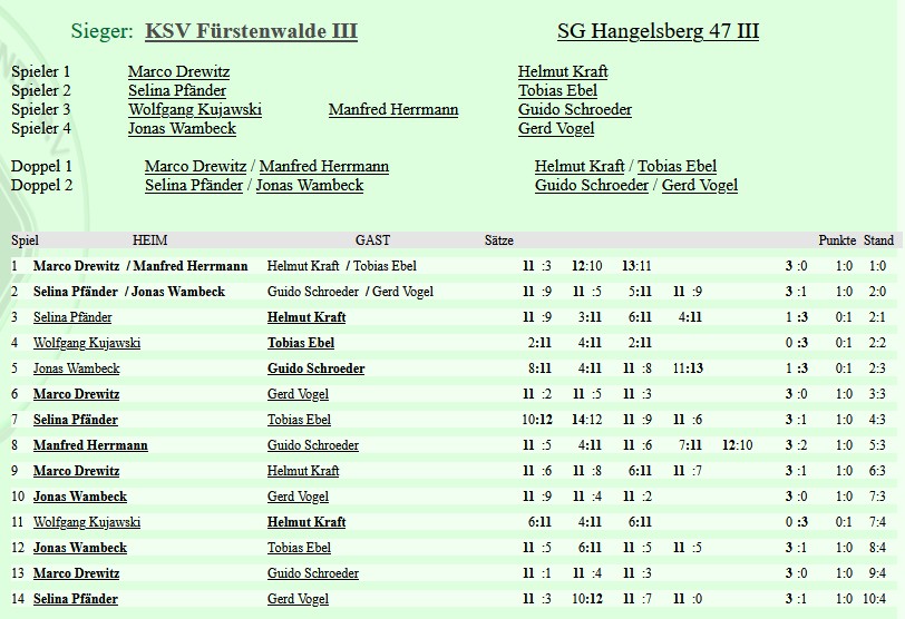 Im Spiel gegen Bad Saarow III musste der KSV II mit Ersatz antreten. Zur Freude erklärte sich unser Vereinsneuling Marco bereit in der 2. Mannschaft zu helfen und dass mit Erfolg. Roman zeigte sich gegen seinen ehemaligen Verein als der Punktemacher. Werner mit seiner üblichen Taktik… 2:0 Führung… rankommen lassen und Sack zu machen.