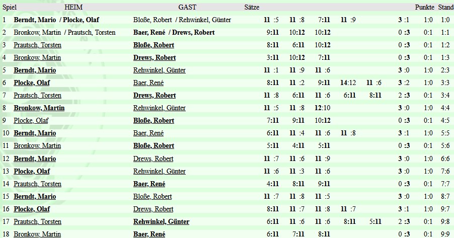 Torsten hatte es in der Hand ein Sieg daraus zu machen – trotz einer 2:1 Führung gab er leider das Spiel gegen Günter Rehwinkel ab. Hier zeigt sich einmal mehr, dass nicht allein die Fitness, sondern insbesondere die mentale Stärke im Spiel über Sieg und Niederlage entscheiden kann.